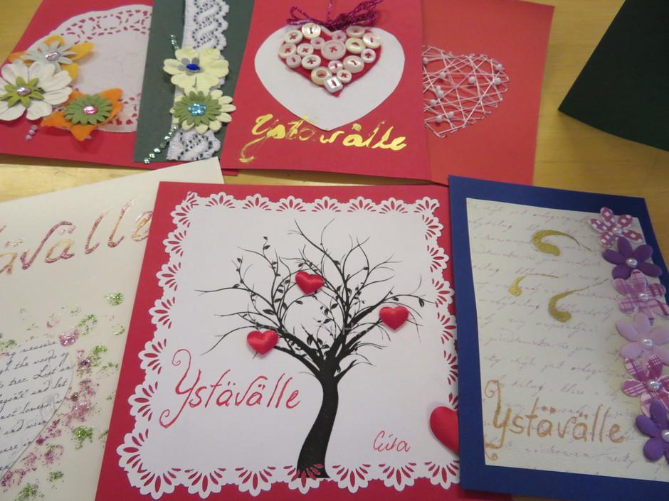 Sitten käytiin materiaalin kimppuun. Osa porukasta karkasi omille teilleen jo ennen töiden loppunäyttelyä. Vaan onhan näitä tässäkin-