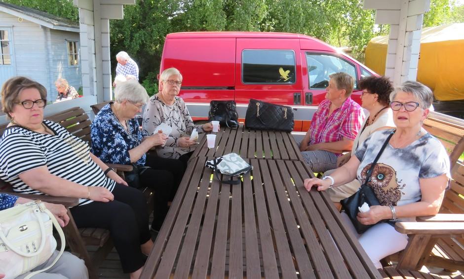 Kierrettyämme busseilla saarta ristiin rastiin, pysähdyimme seurakunnan omistaman Junnilan pihalle, jonka nurmikko oli valkoisenaan kukkivia belliksiä. Seuraavaksi pysähdyimme kirkolle.